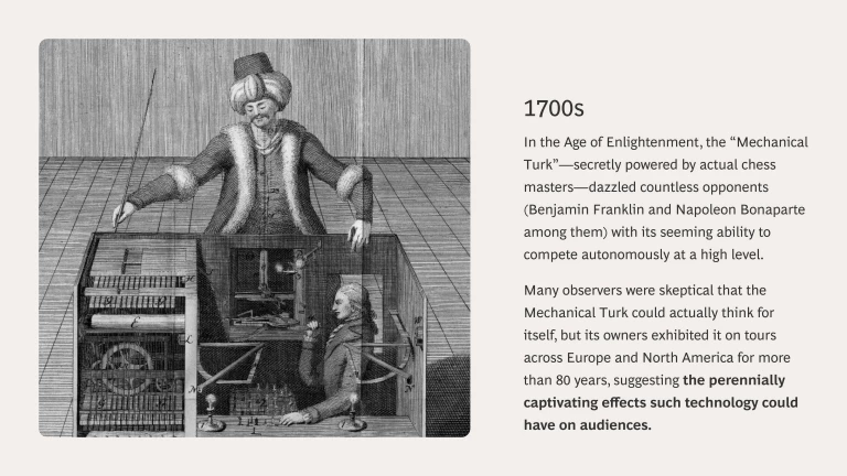 Long before Alan Turing introduced his eponymous test or Blade Runner asked audiences to question the line between human and machine intelligence, ancient civilizations built myths around lifelike, robotic creations that could walk and talk without human intervention.