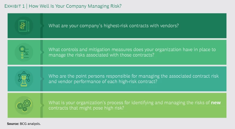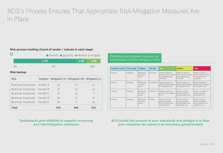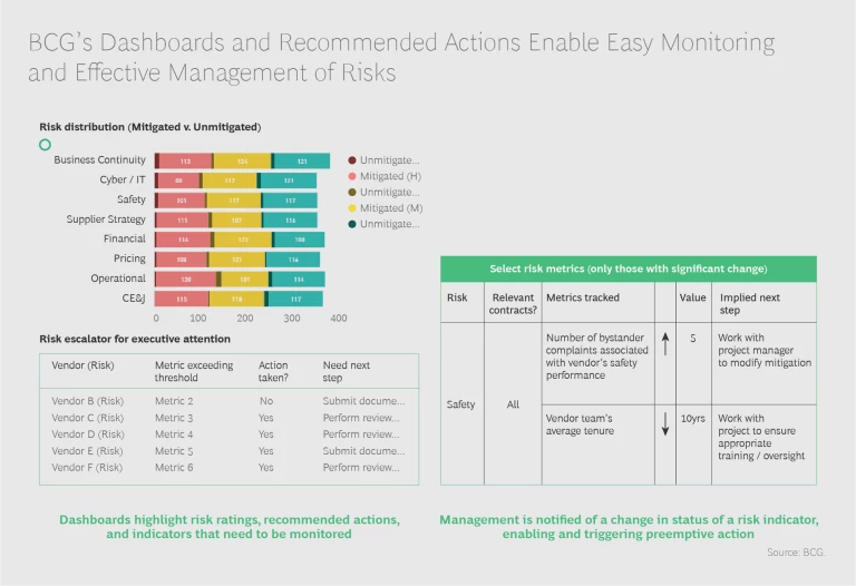 But BCG has created an effective approach that can substantially reduce your chances of being blindsided by a major supplier-related event and enhance the strength and quality of your organization’s response if an incident does occur. It is tested, can be melded into your day-to-day operations relatively quickly, and can translate into tangible results almost immediately. What’s more, implementing it can produce broad benefits—including a more risk-cognizant culture and simplified, more automated procurement and supplier-management processes—within your organization.