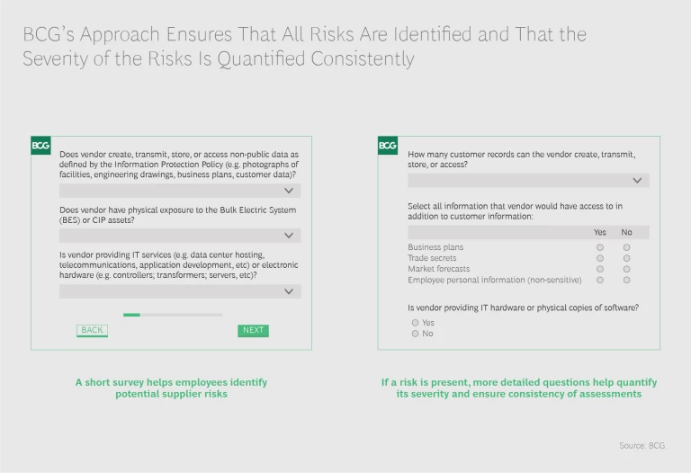 BCG brings a wealth of relevant experience and capabilities to the table. We have worked with major energy companies, including a large utility, on managing third-party risk and have extensive risk management experience across industries. (BCG has worked with more than 50 companies on projects related to third-party risk in the past two years and has more than 20 risk experts in North America alone.)