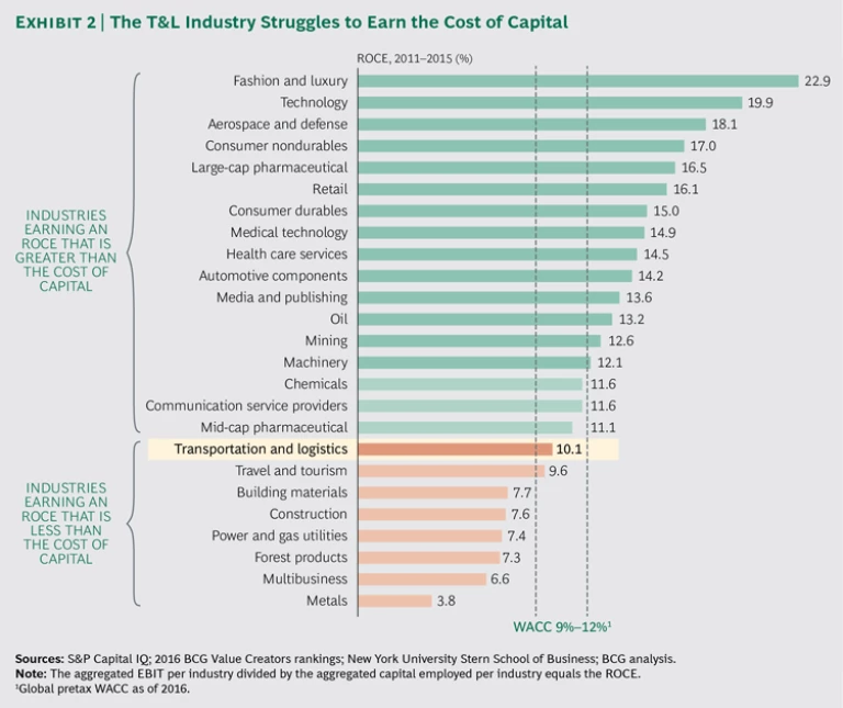 Although the T&L industry is huge and growing, its return on capital employed (ROCE) and total shareholder return (TSR) have been comparatively low. The