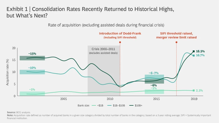 Considering all of these factors, we expect consolidation to continue and to return to rates seen just before COVID-19, possibly with some acceleration. Attractive targets with strong strategic fit and transformative potential remain reasonably limited—so banks that aspire to participate in M&A need to be proactive and bold.