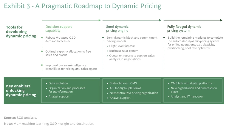 The current complex demand and supply conditions for cargo carriers reinforce the need for dynamic pricing practices, which can be much more effective than manual or partially automated pricing methods. And thanks to greater volumes of data and smarter analytics, coupled with new distribution platform capabilities, many of the traditional challenges and practices no longer pose a serious obstacle to adoption of these practices. Carriers should therefore invest pragmatically in digital use cases that support the evolution of dynamic pricing, gradually adopting new processes and ways of working while reaping intermediate returns on their investments.