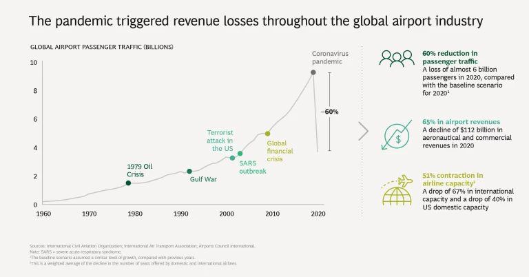 Hard-hit airports can rebound from the crisis by adapting their economic models, promoting industry sustainability, and fully realizing their digital potential.