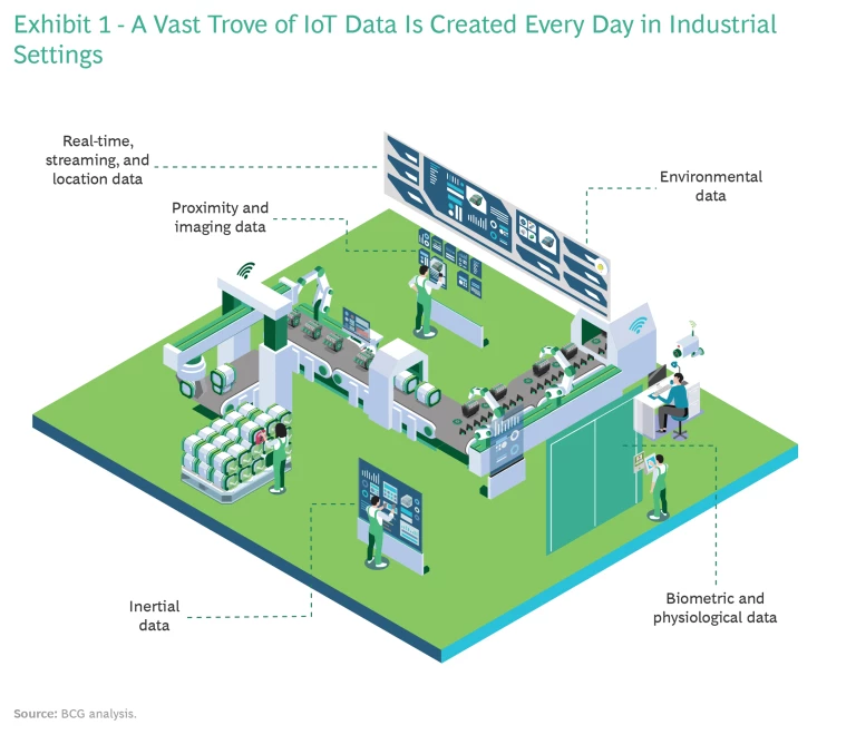 To provide a sense of the IoT opportunity, we looked at the most common use cases and their characteristics. (See Exhibit 2.) Predictive maintenance and parametric solutions are among the use cases that take advantage of the greatest numbers of IoT features. Workplace safety is even higher on the list, and its suitability for IoT technology is clearly illustrated by two examples: manufacturing environments and construction sites.