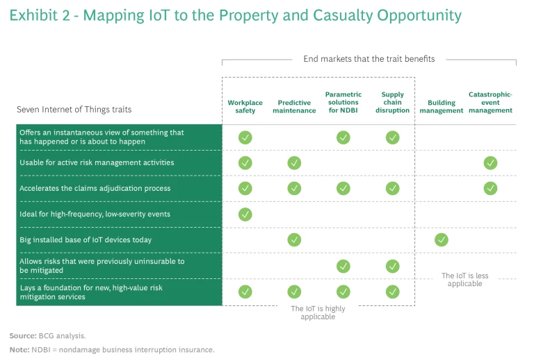 Conversely, commercial P&C insurers that lag in IoT technology could fall behind on certain fundamental measures and remain at a disadvantage to carriers with more accurate real-time data for pricing or claims evaluation. This could open up a gap in profitability in certain kinds of P&C insurance between the IoT haves and have-nots.
