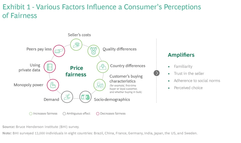 Adopting price variation is easier said than done, though, because various factors influence buyers’ perceptions of fairness. (See Exhibit 1.) For example, every society has its own ideas about what justifies price variation given its culture, norms, and history. These justifications are not always in sync with classical economic theories. Nonetheless, business leaders have a significant opportunity to embrace price variation by aligning their prices with established rules of fairness and communicating transparently and explicitly about why they are varying their prices.