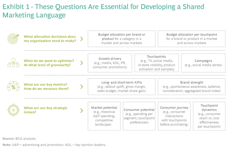 A good starting point is to establish a common strategic lens and shared business logic for making allocation decisions. These can be based on such material business considerations as past performance, what the competition is doing, the potential to attract new consumers, and touchpoints and channel dynamics (online versus offline, new versus traditional media formats, and more). Aligning on key goals and outcomes early in the journey will ensure better engagement and employee buy-in, avoiding later-stage disagreements and misaligned initiatives.