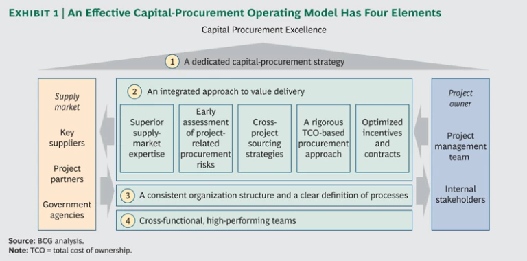 On the basis of projects that The Boston Consulting Group has worked on with clients, we have identified four building blocks of a successful capital-procurement operating model that can be applied by companies across many industries: