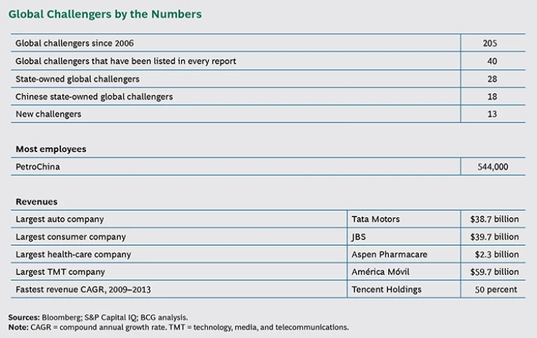 To celebrate the success of these companies, we are publishing a list of 100 rapidly globalizing companies from emerging markets—the 2014 BCG global challengers. This is the sixth time we have published the list since 2006, and the 2014 list is noteworthy in three key ways.