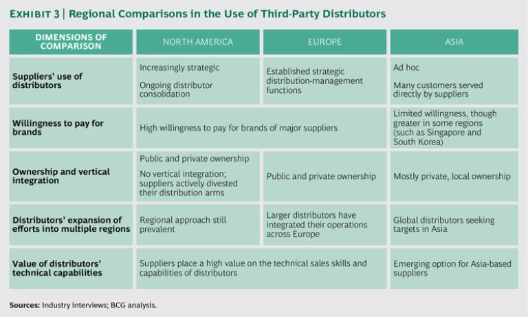 Yet there are clear differences as well. European suppliers are more likely to have formal distribution-management functions that can oversee their networks of external distributors. Such internal expertise is needed in Europe because of the complexities in managing distributors across many countries and jurisdictions.