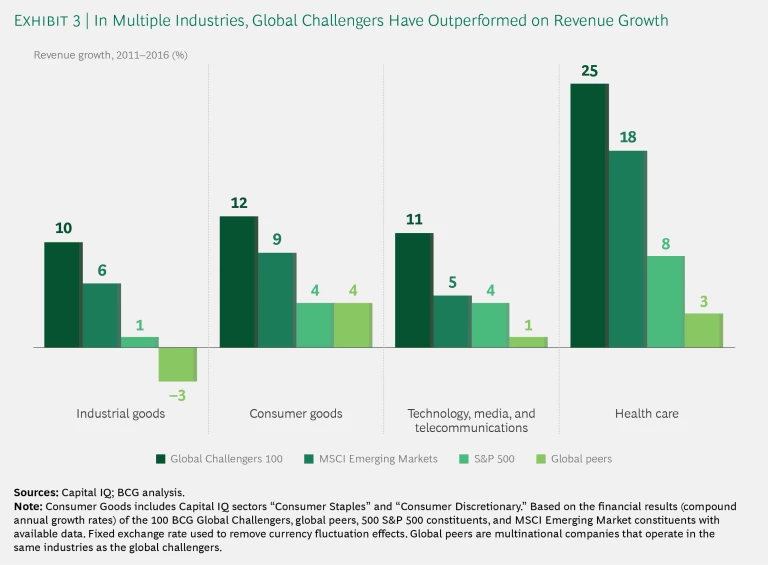 All of this has put the global challengers in a strong position to continue to outperform in their home markets and to challenge developed-market companies for leadership internationally.
