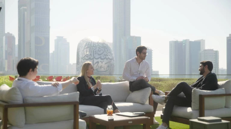 Our Dubai office’s large outdoor terrace is an excellent place to meet, greet and spark conversations — with views of the Burj Khalifa, the Dubai International Financial Centre, and the incredible Museum of the Future.