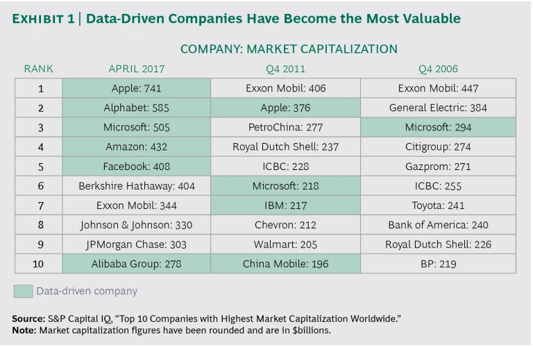 Most CEOs recognize the power of data-driven transformation. They certainly would like the 20% to 30% EBITDA gains that their peers are racking up by using fresh, granular data in sales, marketing, supply chain, manufacturing, and R&D. And they may even dream of joining the ranks of data-driven companies that have shoved aside traditional players among the world’s most valuable companies. (See Exhibit 1.)