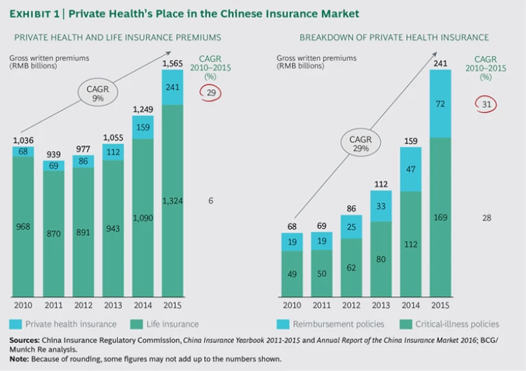As of 2015, private health insurance in China was about an RMB 241 billion ($36.7 billion) market, having grown rapidly—at about 36% a year—since 2010. The majority of the market consists of critical-illness policies—indemnity products sold by life insurance companies. Such products pay a lump sum if the insured person is diagnosed with any of a set of agreed-upon medical conditions. These policies are usually offered as riders to life insurance products and are easy to sell and design, a fact that has led to their popularity. However, critical-illness policies cover only a narrow set of predefined conditions, such as specific types of cancer. And their structure doesn’t allow for ongoing reimbursements if long-term treatment is needed. To get such coverage, people must have a purer form of reimbursement health insurance that covers them no matter what their diagnosis.