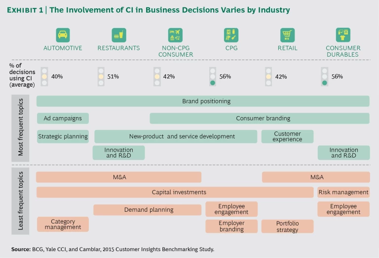 To understand how companies can improve the effectiveness of their customer insight efforts, it is important to step back and assess how CI functions evolve and the role they need to play. The Boston Consulting Group’s Center for Customer Insight, in partnership with Cambiar and the Yale School of Management’s Center for Customer Insights, conducted a global benchmarking study of nearly 650 respondents from more than 90 customer-facing enterprises across all segments of the consumer industry in 2009 and then again in late 2015.