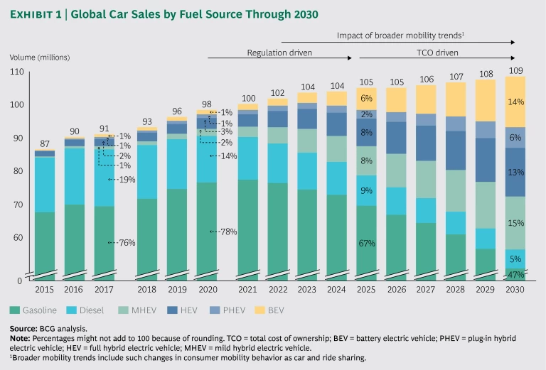 (For a detailed analysis of projected sales volumes by powertrain in the world’s major markets, see the appendix.)