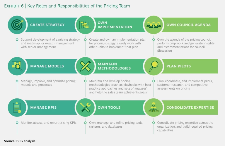 Smart pricing is not a tactical decision but a strategic course of direction. Once set, it should become an entrenched cultural characteristic of the firm. Because there is no such thing as a perfect pricing model, wealth managers should aim to develop an approach that is flexible enough to adjust to a dynamic commercial environment. In our view, five pillars of pricing capability lead to outstanding execution:
