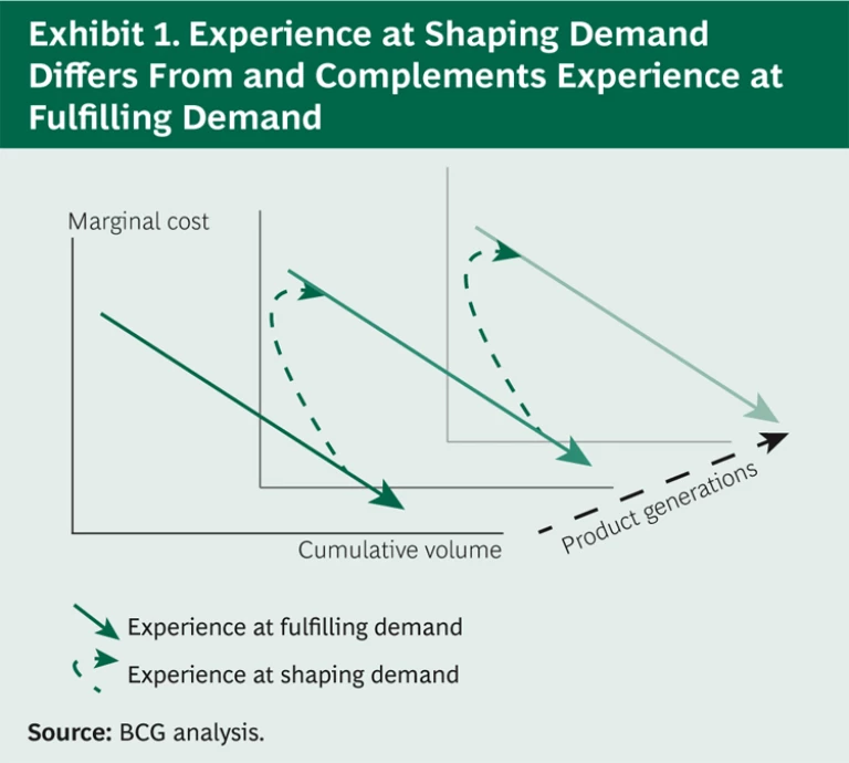 These companies’ focus on excellence in both shaping and fulfilling demand allowed them to thrive, often overtaking their established competitors. This is a phenomenon that the traditional experience curve cannot explain.