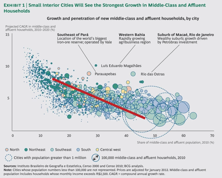 For the past few decades, both foreign and domestic companies have scrambled for advantage in Brazil, striving to tap into one of the world’s greatest emerging consumer markets. But, in general, they have not thought far beyond the capital cities and major metropolitan areas. Small cities deep within Brazil’s interior account for more than half of the country’s population. But compared with the rich opportunities in bigger cities, especially along the country’s southern coast, they have been regarded as less affluent, too dispersed, and excessively hard to reach.