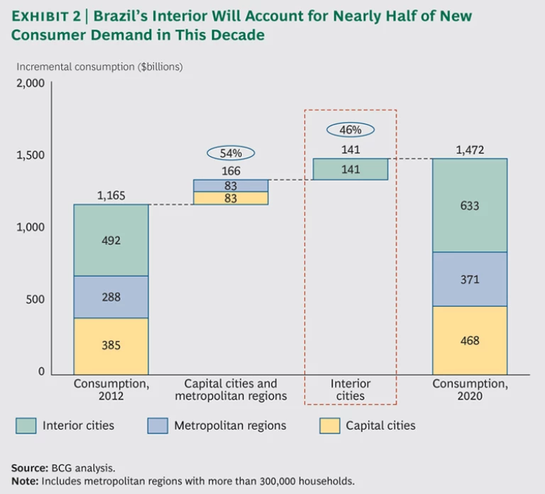 Food and Beverages. Interior cities constitute Brazil’s biggest market for food and beverages and will generate an additional $29 billion in annual sales by 2020, 47 percent of total incremental growth. Interior cities in the southeast and northeast will be the biggest contributors to growth in those regions.