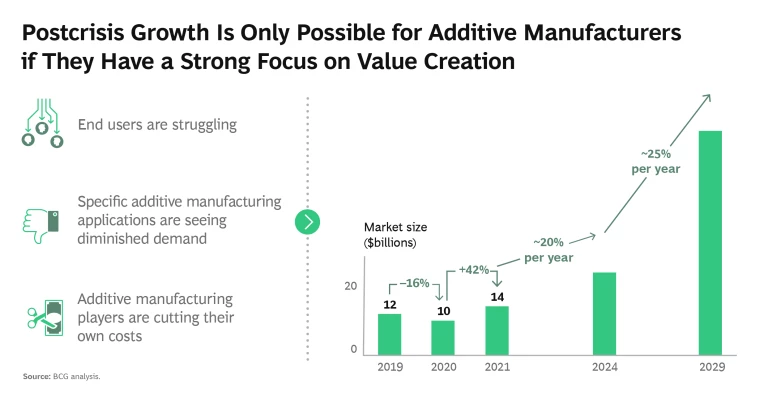 The COVID-19 pandemic has created severe headwinds for additive manufacturing (AM) players, interrupting what had been a positive growth trajectory. To reestablish the precrisis growth path, AM players must focus on developing a strong value proposition for their products and innovations.