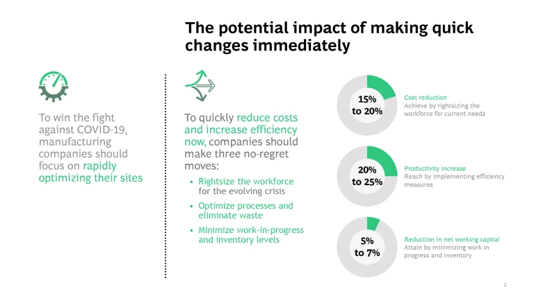 To win the fight against COVID-19, manufacturing companies should focus on rapidly optimizing their sites.