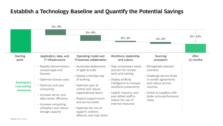 This transparency will help the company define and select the relevant measures to leverage this cost-savings potential. BCG’s experience transforming IT into a world-class technology function can support these efforts.