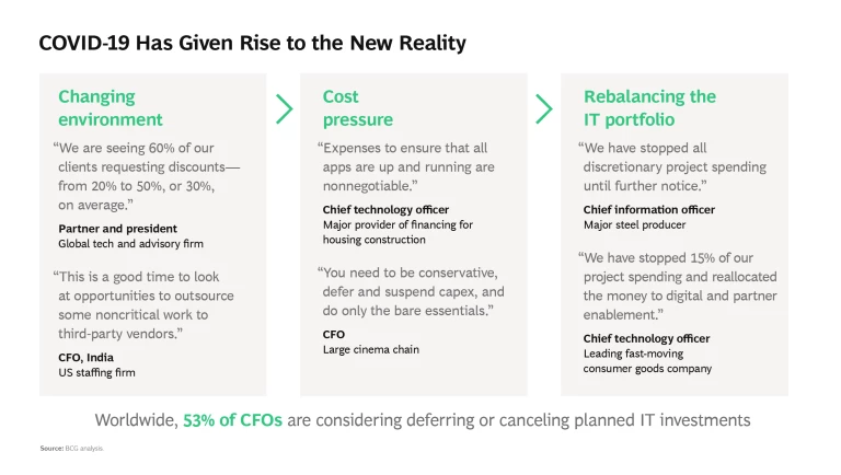 The COVID-19 crisis has forced companies to reconsider their priorities for technology investments. Digital channels and the virtual workplace have gained importance at the same time that companies are under pressure to cut costs in response to the pandemic-induced downturn. To adjust to the new reality, companies across industries must find ways to retain the most important technology capabilities and increase resilience even as they reduce overall spending.