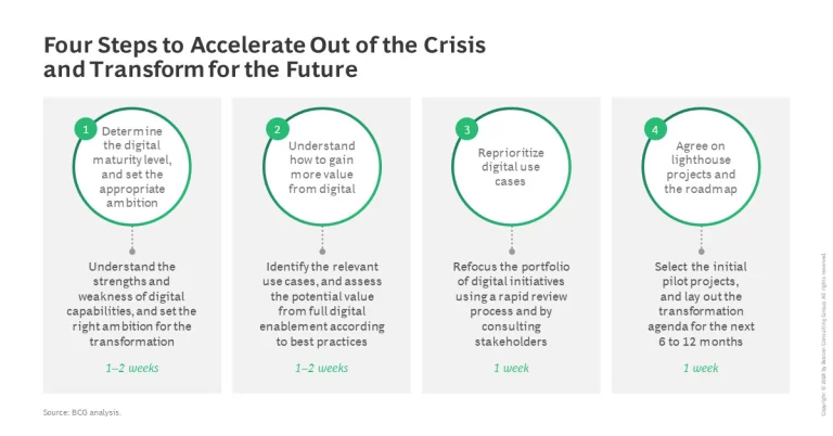 - Speed up digital delivery. Companies have implemented digital initiatives 1.5 to 4 times faster than in the past.