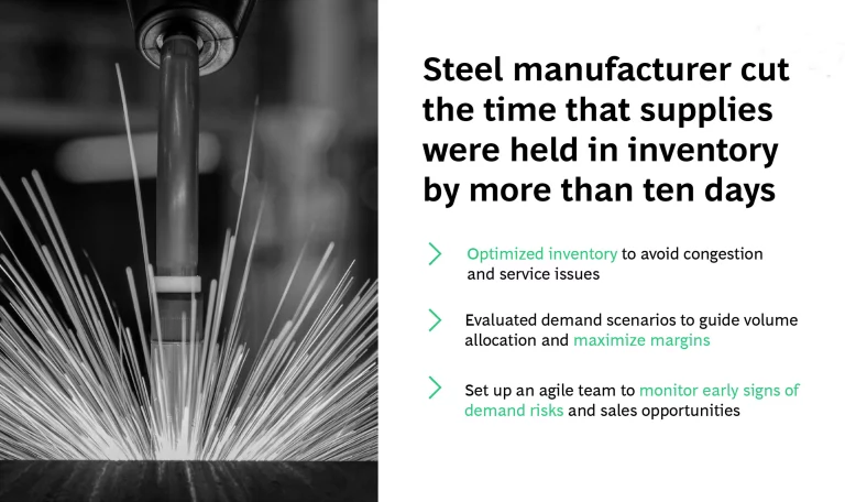 During the fight phase, it is also vital to rigorously manage liquidity. The effort should be led by a cash management office that is explicitly responsible for managing short-term liquidity, creating liquidity plans, launching cash preservation measures, and monitoring and forecasting cash and liquidity development. To further free up liquidity, COOs should optimize net working capital, especially inventory.