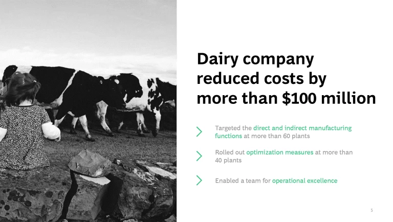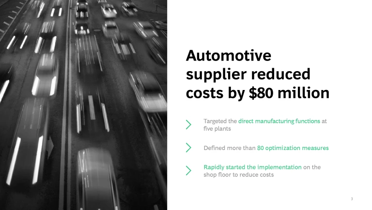 - Develop an ambitious plan to capture the potential opportunities. Set a thorough agenda with a strict focus on cost reduction and productivity improvements. Hold workshops with diverse teams to generate ideas for cross-functional improvement measures. Identify, and consistently replicate, the operating parameters that drive the highest performance levels. Take a broader perspective by considering industry best practices.