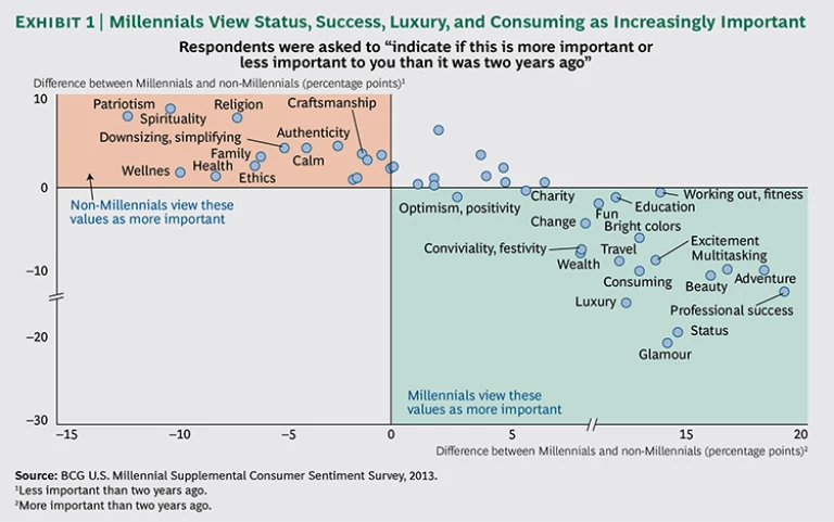 Millennials are also leading indicators of the new “status currency”—the status and values that consumers wish to project through their purchasing decisions and their brand affiliations.