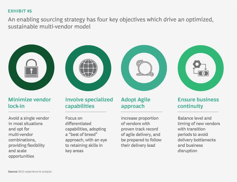 - Ensure business continuity – balance level and timing of new vendors with transition periods to avoid delivery bottlenecks and business disruption