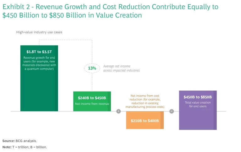 This progress has led to more than 100 use cases in multiple industries that can create enormous value. We have estimated that at maturity (projected to be around 2035), the technology can create $450 billion to $850 billion in net income for end users through a combination of new revenue generation and cost savings. (See Exhibit 2.)