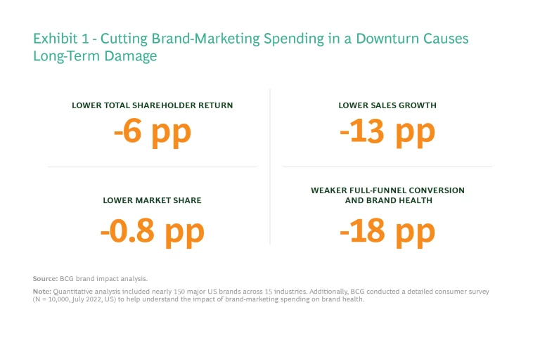 - Market share drops. Companies that cut brand spending lost 0.8 percentage points of market share relative to those that boosted brand spending.