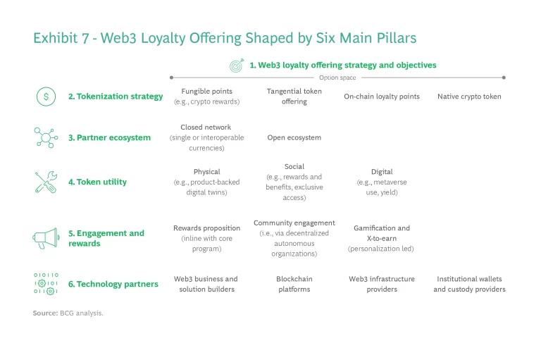 We’ve developed a six-pillar framework to help companies think through their Web3 loyalty proposition. (See Exhibit 7.)