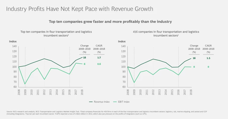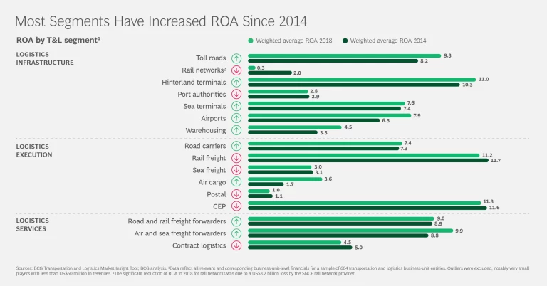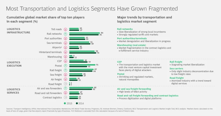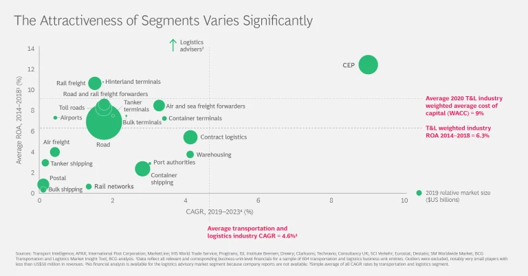 BCG’s Transportation and Logistics Market Insight Tool can be used to gain a highly customized view of the segments most relevant to your business and strategy. Our analysis of the data uncovers several overarching trends.