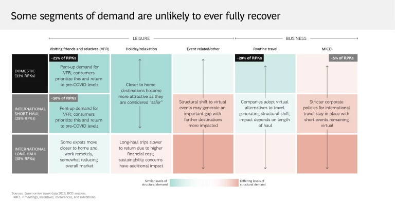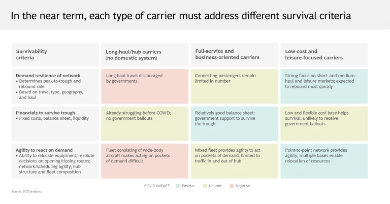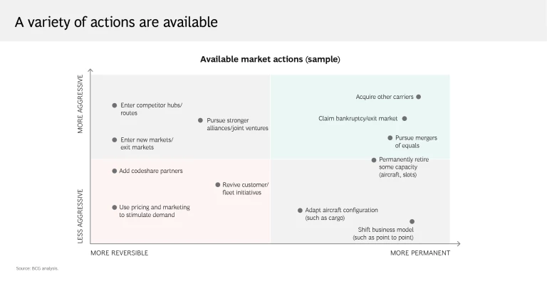 Agility amid uncertainty is also critical. Some airlines, such as low-cost carriers, are structurally advantaged with lower and more flexible cost bases and a stronger focus on leisure traffic. But all airlines can act with agility to make immediate short-term changes to better position themselves for the new reality, such as by reshaping their networks to focus more on leisure destinations. All options should be on the table. Actions that appeared unrealistic months ago may now be worth considering again, depending on circumstances, as the marketplace will continue to evolve. Opportunistic organic and inorganic moves may fortify competitive position.