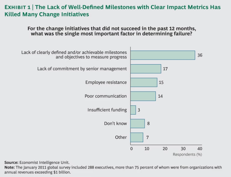Even more worrisome: proof of resistance was everywhere, confidence in the company’s senior management was low, and there was little clarity concerning the factors by which employees were measured. Long story short: the changes went nowhere fast. In that respect, the energy company was no different from the myriads of other organizations that fail to do a proper job of delivering transformational changes.