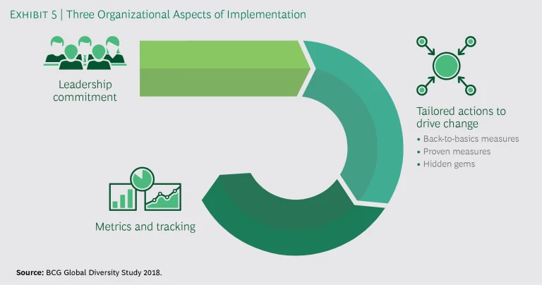 Our analysis pointed to several organizational aspects of implementation. Companies that are developing diversity and inclusion initiatives need to apply the same methodology to those efforts that they apply to any other business priority. (See Exhibit 5.)