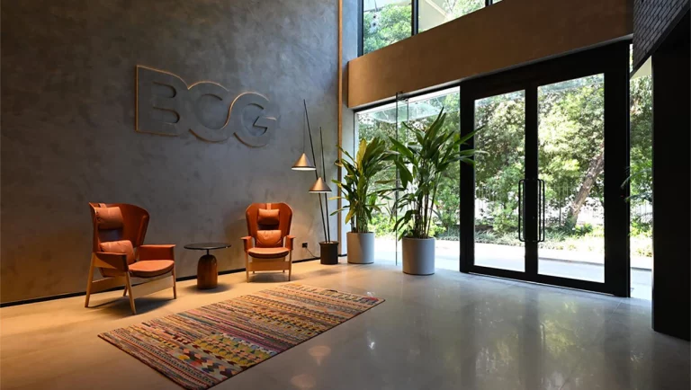 On January 23, 2024, BCG India inaugurated its new Mumbai office space, AamchiVerse, which reimagines a futuristic workplace by blending creativity, technology, and sustainability. This unique office features a central cone reminiscent of Bombay’s historic mills, Mandalas symbolizing universal symmetry, and a stepwell-inspired design connecting various spaces. Emphasizing local art and sustainable materials, it fosters a fluid, human-centric, and environmentally friendly atmosphere. AamchiVerse transcends the concept of a mere office to become a dynamic, interconnected campus, reflecting BCG’s commitment to a progressive, collaborative, and innovative workplace culture.