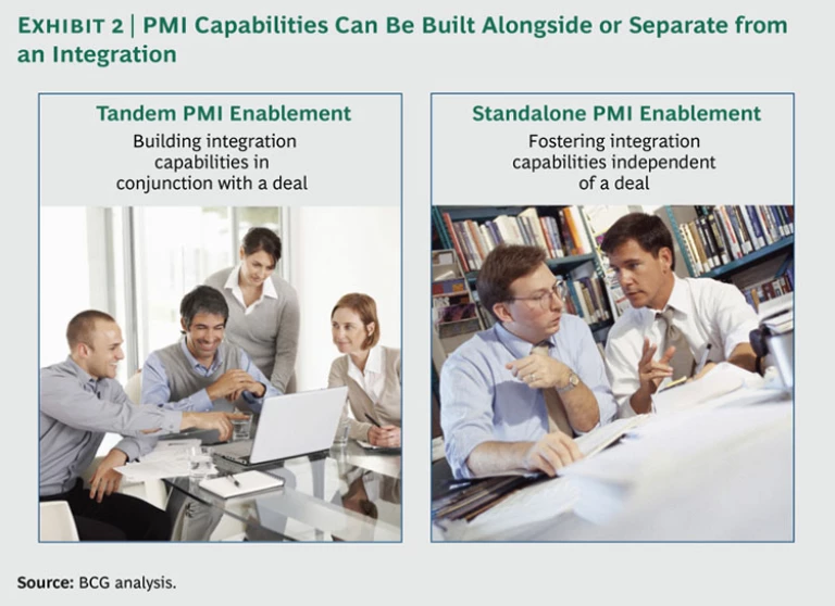 Both approaches to building integration capabilities have merit. It is important that leaders fully understand the dynamics of tandem and standalone PMI enablement before committing to either one.