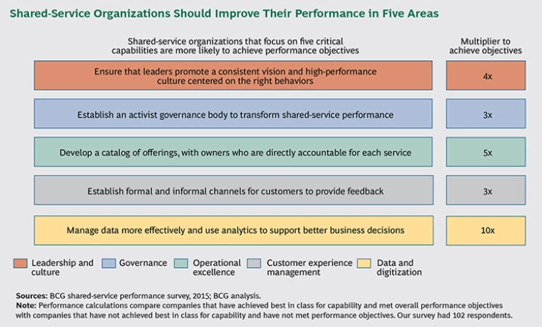 Our survey results point to five areas in which shared-service organizations should develop capabilities to enhance their performance: