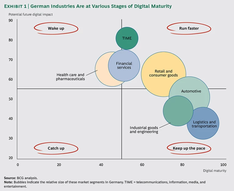 No doubt, German industries have their work cut out for them in the new digital landscape. Even those sectors that are well along—like the automotive and logistics industries—have to keep the momentum going. But it is work that can bring a vast and multifaceted payoff. Digitization can help German businesses meet customer needs in compelling ways, improve their own competitive standing, and lead their markets in new and exciting directions just waiting to be explored.