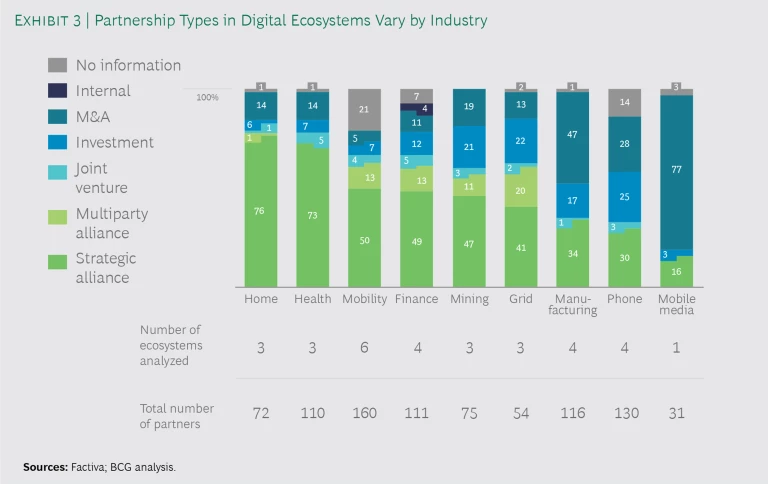 Individual company strategy plays a part in what type of partnership mix is appropriate, however. Apple—though consumer-facing—is known for tightly controlling information and quality in order to limit brand risk. BCG’s future research will look more closely at when particular types of agreements work, when they don’t, and what is the most effective configuration.