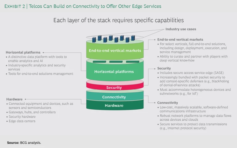 Telcos that move beyond their traditional connectivity business will be able to take advantage of opportunities "up the stack" by building edge-enabled horizontal platforms or end-to-end vertical services.