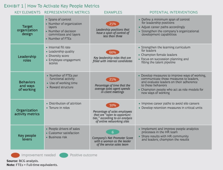 Successful transformations set specific goals and implement clear methods for measuring progress. In the past, organizations undergoing transformations relied on quantitative scorecards to assess financial and operational results, but they employed qualitative measures to evaluate people. It was therefore difficult to generate reliable and insightful data about the financial impact of people’s performance.