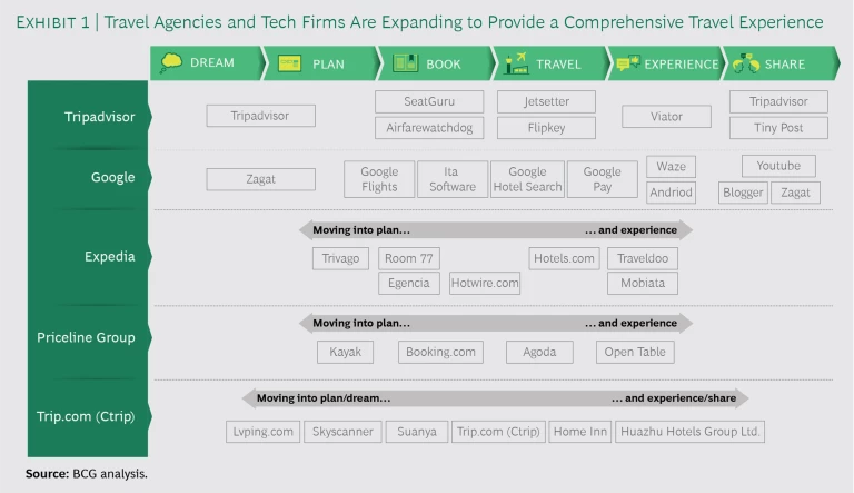 Already some travel distributors have started expanding to provide a more comprehensive experience—allowing customers to book not just a single component of a trip but all components. By increasing their range of product offerings through strategic ventures and partnerships, these companies are bundling and packaging trip experiences, removing the hassle of booking different travel components at different sites. (See Exhibit 1.) Better still, customers can also get a single customer-service point of contact for all aspects of a trip if something goes wrong.