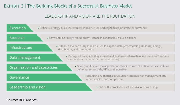 The right approach, in contrast, is to build the digital business model layer by layer. Seven critical building blocks should underpin this effort. (See Exhibit 2.)