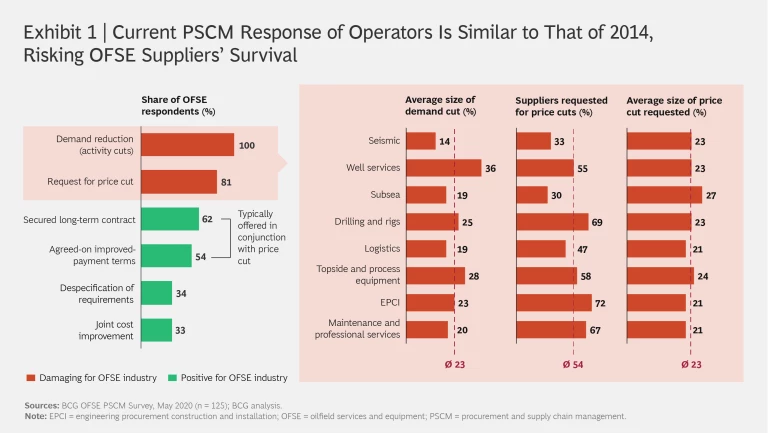 OFSE companies are facing a business environment that is harsher than in any previous downturn. As a result, several leading suppliers have already filed for bankruptcy protection. To better understand the difficulties confronting OFSE companies, we surveyed senior managers at 125 tier one supplier organizations, conducted CEO interviews at more than 30 of those companies, carried out financial analysis of over 200 suppliers, and analyzed spending by operators across all main basins.